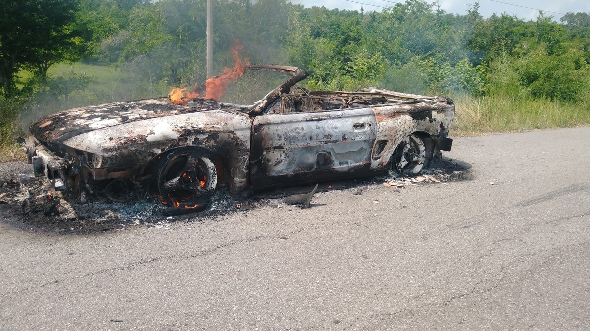 Convertido en cenizas quedó un vehículo compacto que circulaba sobre la carretera federal Alazán -Canoas a la altura del municipio de El Higo en el norte de Veracruz.