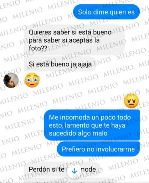 “Esa ocasión me invitó a ver unas fotos y al entrar al perfil me percaté que eran imágenes de él desnudo y una de esas fotos era la misma que me había enviado por Facebook Mabel Leiva, así que bloqueé la cuenta."