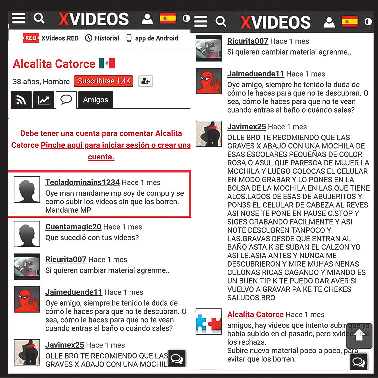 El perfil que denuncian las estudiantes es de una persona que se identifica como “Alcalita Catorce”, tiene 38 años y es hombre. Esta cuenta tiene más de mil 400 seguidores y se dedicaba a subir videos con títulos como “Universitaria espiada en wc”.