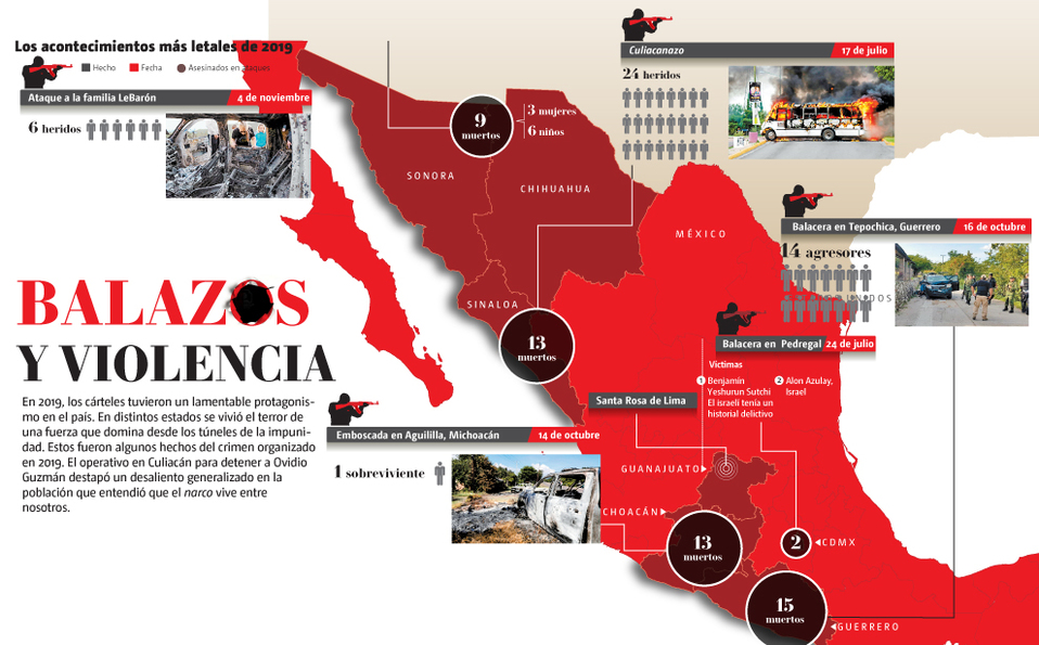 En 2019, los cárteles tuvieron un lamentable protagonismo en el país. En distintos estados se vivió el terror de una fuerza que domina desde los túneles de la impunidad. Aquí algunos hechos del crimen organizado en 2019.
