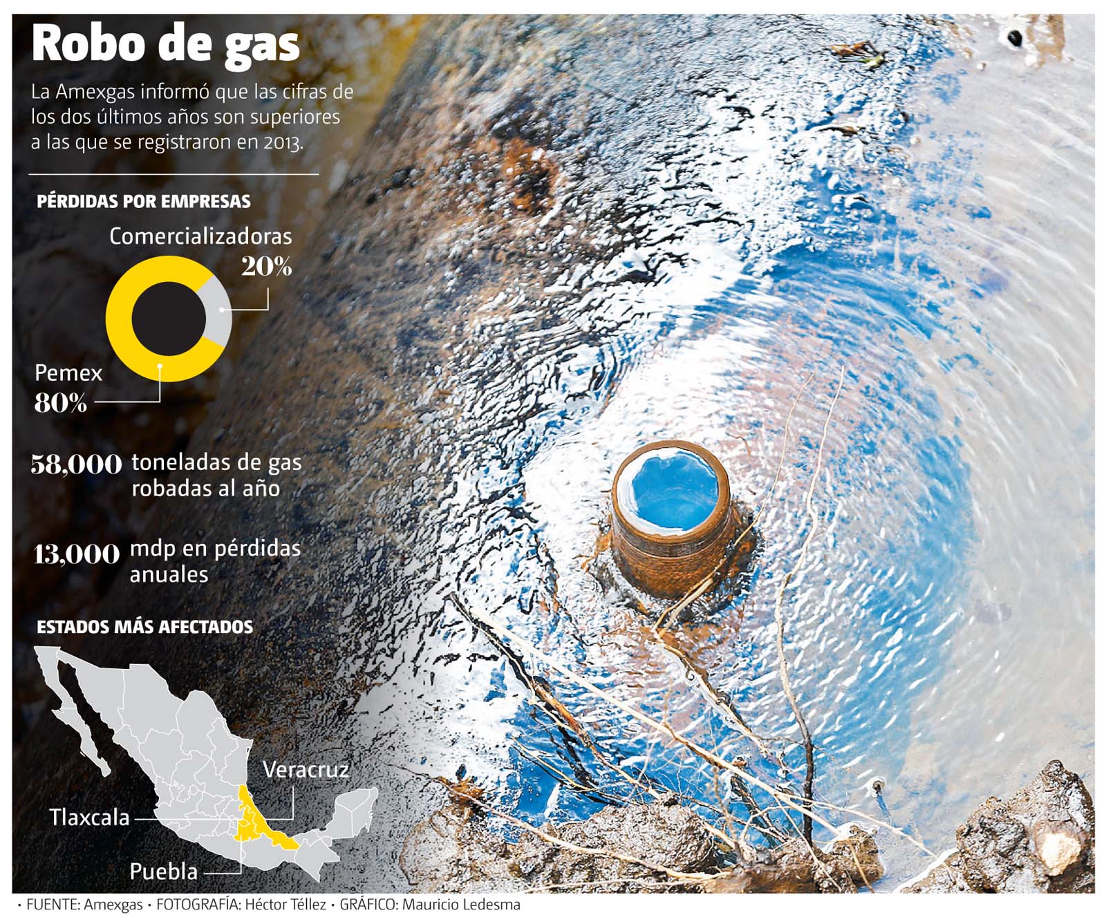 El robo de gas se ha intensificado en los últimos dos años, lo que ha generado pérdidas por 13 mil millones de pesos anuales, señaló el presidente ejecutivo de la Asociación Mexicana de Distribuidores de Gas Licuado y Empresas Conexas (Amexgas), Carlos Serrano.