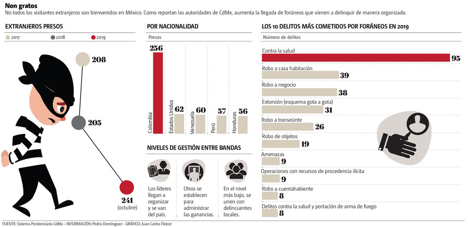 El turismo criminal está en auge en Ciudad de México. De enero a octubre de 2019 fueron encarcelados 15 por ciento más extranjeros que en 2017 y 17 por ciento más que en 2018.