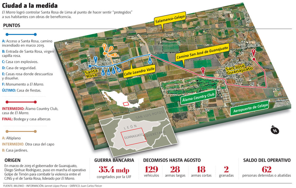 Así, entre Celaya y Villagrán, El Marro ha podido escapar en el último año del operativo Golpe de timón sin una red de túneles que conectaban sus propiedades de manera subterránea como en un primer momento se llegó a decir, pero con lugares estratégicamente distribuidos.