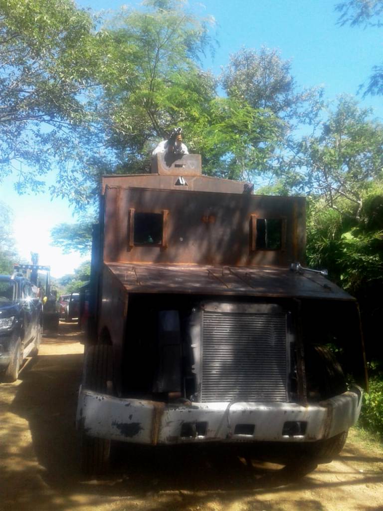 Los integrantes del FUPCEG bautizaron el camión como El Monstruo, por el aspecto que la unidad adquiere al tener gruesas placas de acero soldadas en la cabina y costados.
