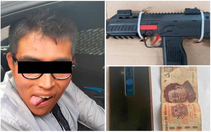 Al notar la presencia policial, el sujeto intentó escapar corriendo, pero tras ser alcanzado por los policías fue capturado, a la altura del bajo puente en Calzada de Tlalpan y, tras una revisión preventiva, se le aseguró una réplica de arma de fuego, un teléfono celular y 500 pesos.