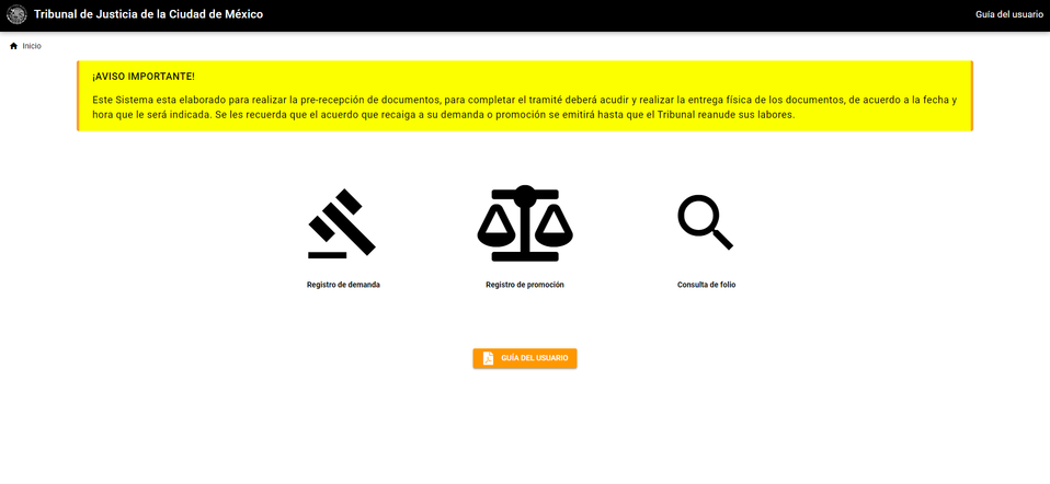 El sistema de pre-registro de demandas y promociones electrónicas, también permitirá agilizar trámites, en estricta observancia de las medidas de salubridad ordenadas por la Jefatura de Gobierno de la Ciudad de México, así como autoridades sanitarias.