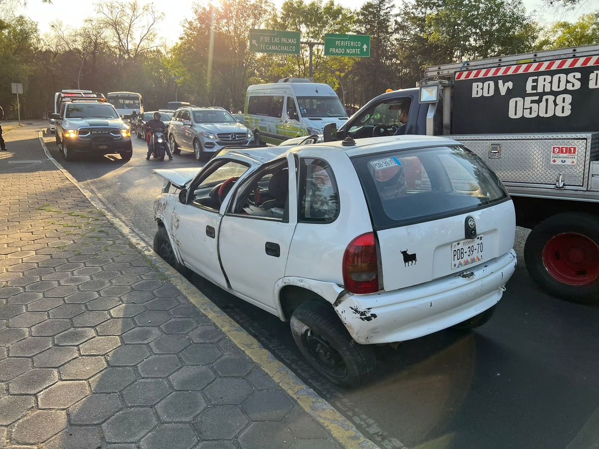 Un hombre de aproximadamente 45 años resultó herido tras volcar entre el cruce de Paseo de la Reforma y avenida Paseo de las Palmas en alcaldía Miguel Hidalgo, donde servicios de emergencia atendieron a la víctima.