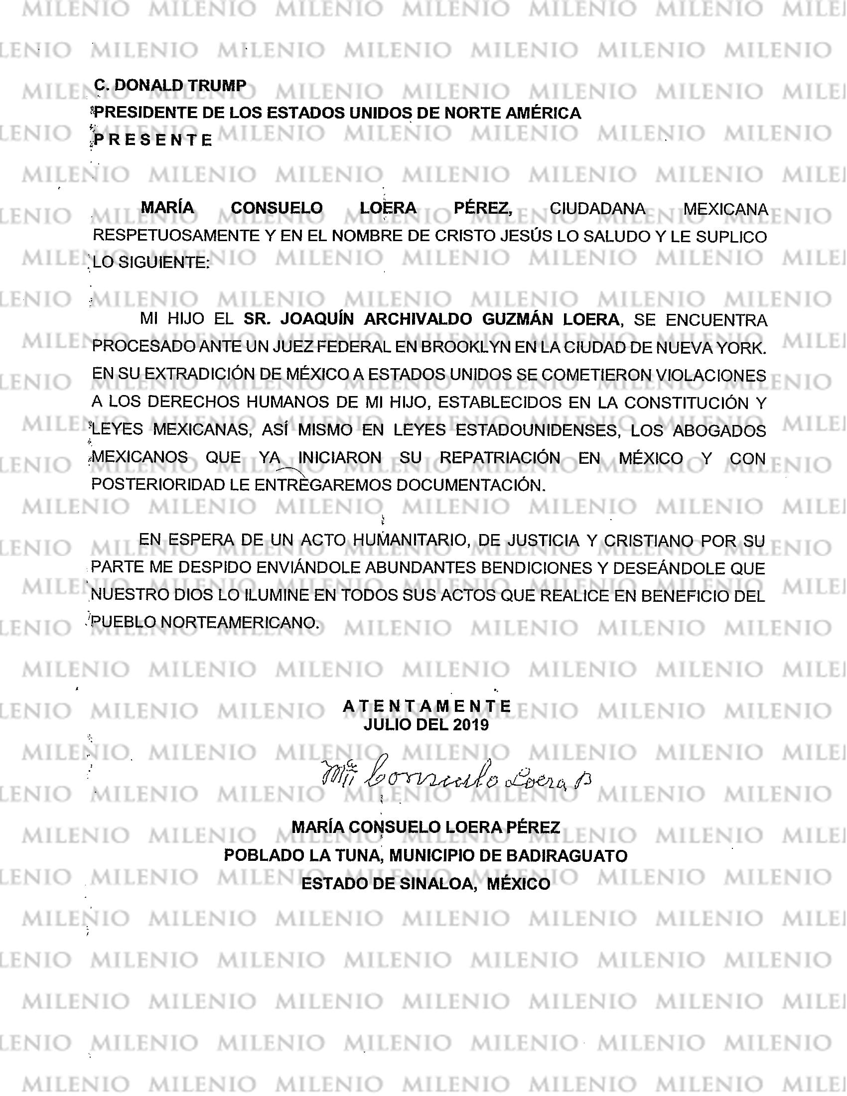 En la carta la mamá de 'El Chapo' pide a Donald Trump su intervención. (MILENIO)