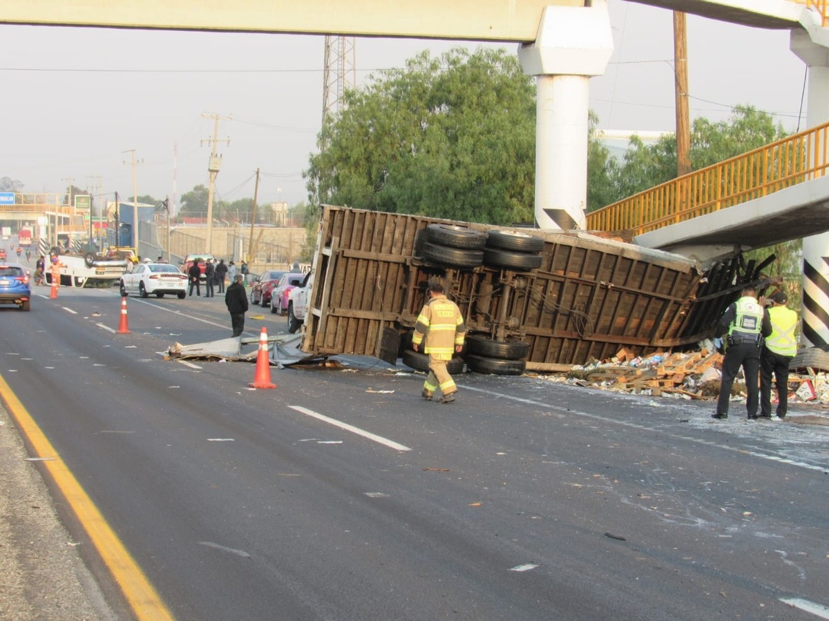 La volcadura de un tráiler dejó un saldo de cuatro personas lesionadas esta mañana sobre la carretera federal Texcoco-Calpulalpan, a la altura del poblado de Santa Inés, en el municipio de Tepetlaoxtoc.