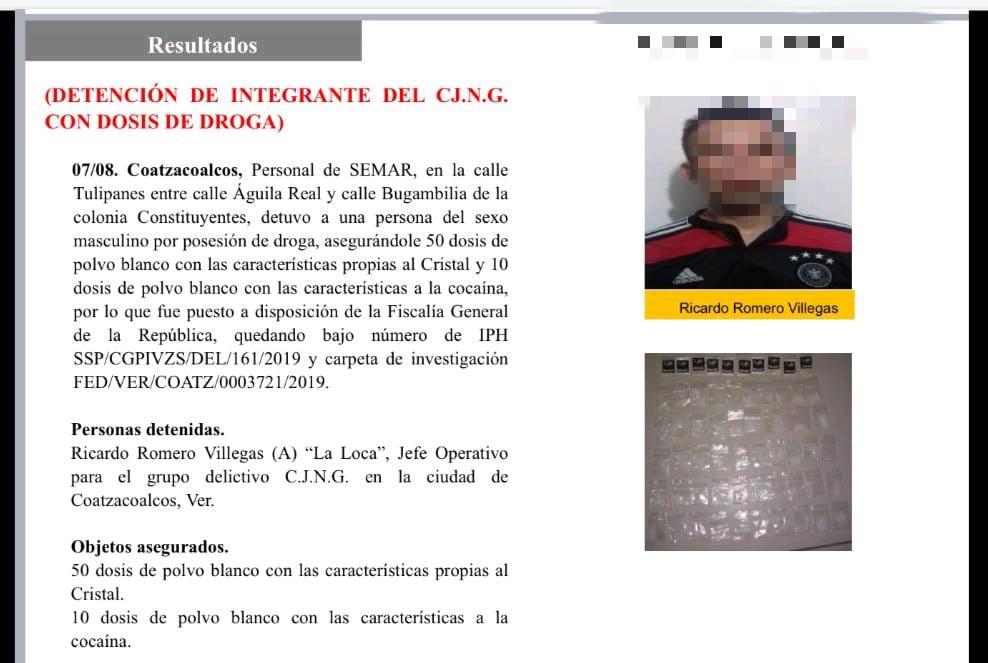 Explicó que previo al ataque de anoche, La Loca fue detenido en julio y durante 48 horas estuvo bajo resguardo de la Fiscalía General del Estado de Veracruz y posteriormente fue liberado, sin haber sido puesto a disposición de un juez.