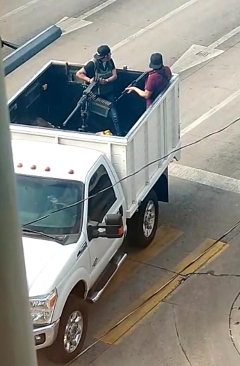 En el operativo de rescate de Ovidio Guzmán también participaron al menos dos camionetas blancas con redilas, conocidas como 'estaquitas', aparentemente de una y media toneladas con fusiles de alto poder empotrados en la caja.