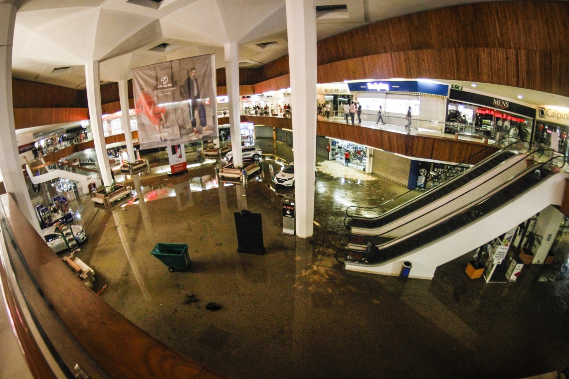 La parte baja de Plaza Patria también resultó inundada; el agua afectó a al menos una veintena de locales comerciales, el estacionamiento quedó bajo el agua ocasionando daños en al menos 50 automóviles.