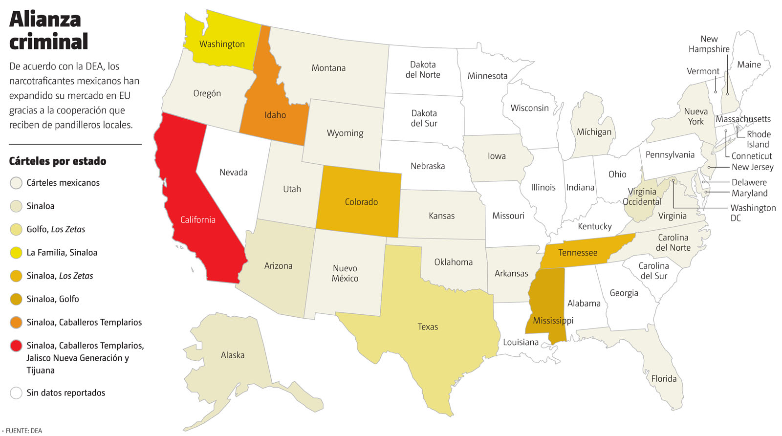 La Agencia Antidrogas Estadounidense (DEA) presentó su Evaluación Nacional de Amenaza de Drogas 2018 y ahí estableció que los cárteles mexicanos son la "más grande amenaza criminal para Estados Unidos".
