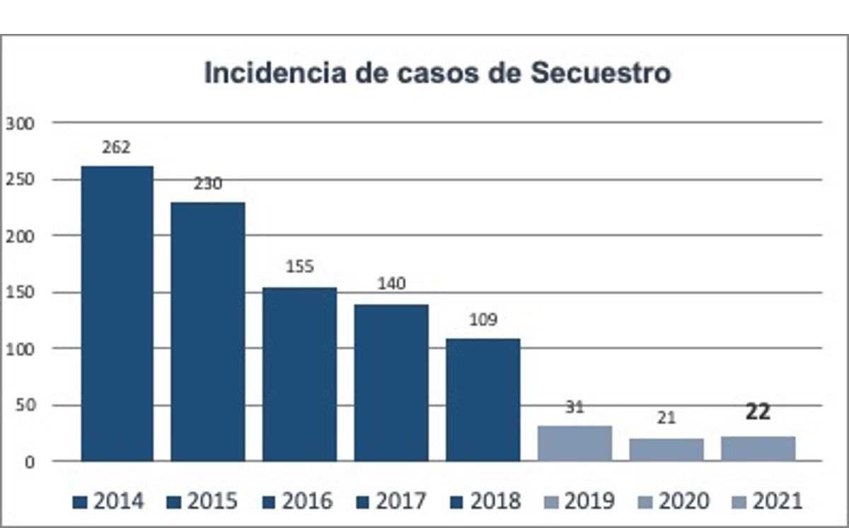 En el presente año y hasta el 9 de diciembre la Fiscalía General de Justicia del estado de Tamaulipas tiene el reporte de 22 secuestros, que comparados con los 262 que se denunciaron en el año 2014 hay una reducción del 83%.
