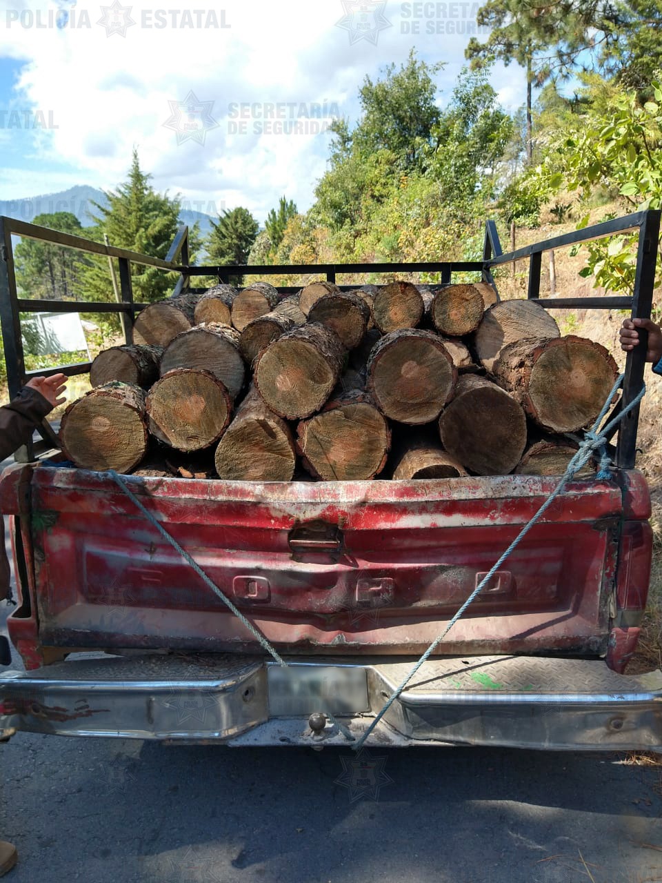 De acuerdo con informes de la dependencia estatal, los hechos ocurrieron sobre la carretera Donato Guerra - San Juan Xoconusco, donde los uniformados realizaban un operativo, cuyo objetivo es patrullar zonas de riesgo; sin embargo, a la altura del kilómetro 3+100 detectaron una camioneta Ford F150 de color rojo, que transportaba troncos de madera, por lo que le dieron alcance para inspeccionar la carga.