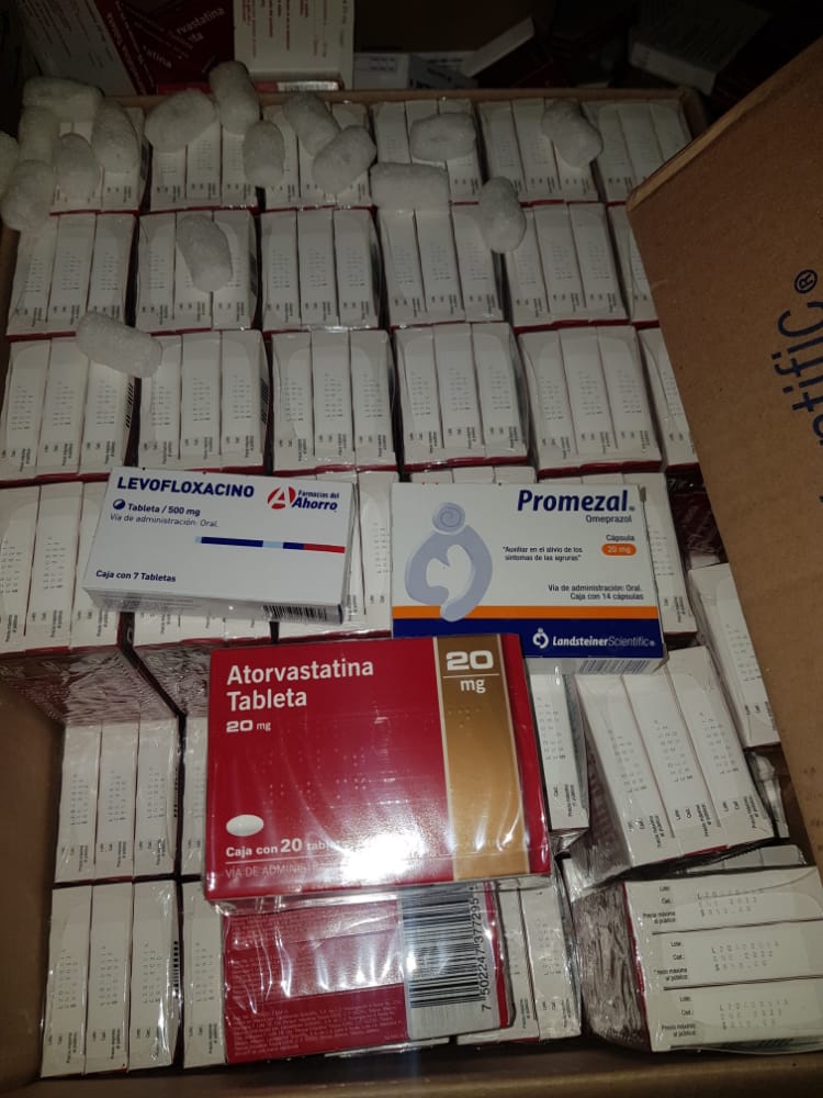 La Fiscalía solicitó una orden de cateo a la autoridad judicial, la cual fue autorizada y cumplimentada en la casa de la calle Juan Escutia donde hallaron 35 cajas con medicamentos como Pantoprazol, Atorvastatiba, Levofloxacino, Lamotrigina, Montelukast, Venlafaxina y Desloratadina.
