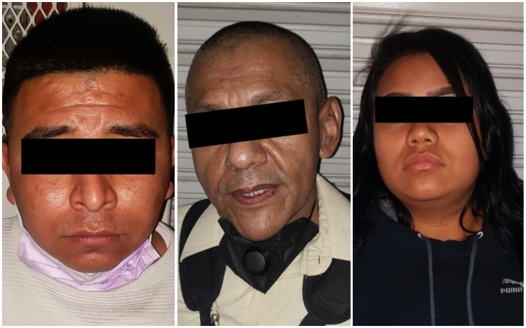 Los detenidos son David Cadena "N" o David Alfredo "N", de 57 años de edad, Atziry Neshkala "N", de 19 años y Guillermo Martínez "N", de 25 años de edad, a quienes se les aseguraron un arma de fuego corta y 15 cartuchos útiles, así como dinero en efectivo.