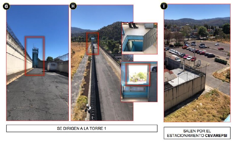 Luego llegaron a la planta baja recorriendo un espacio de aproximadamente 20 metros apoyados por una escalera de donde se presume que ascienden a la parte superior del muro perimetral del reclusorio y llegar a los vehículos de traslado.