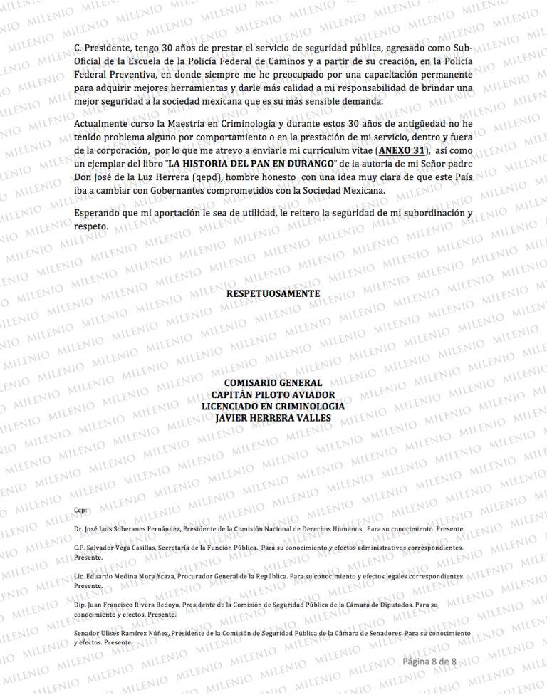 En más irregularidades de García Luna, descritas en esta carta, Herrera Valles escribió que con sus campañas mediáticas, se adjudicaba como propios logros de otras instituciones, por los que era desmentido después, por ejemplo, por la Sedena.