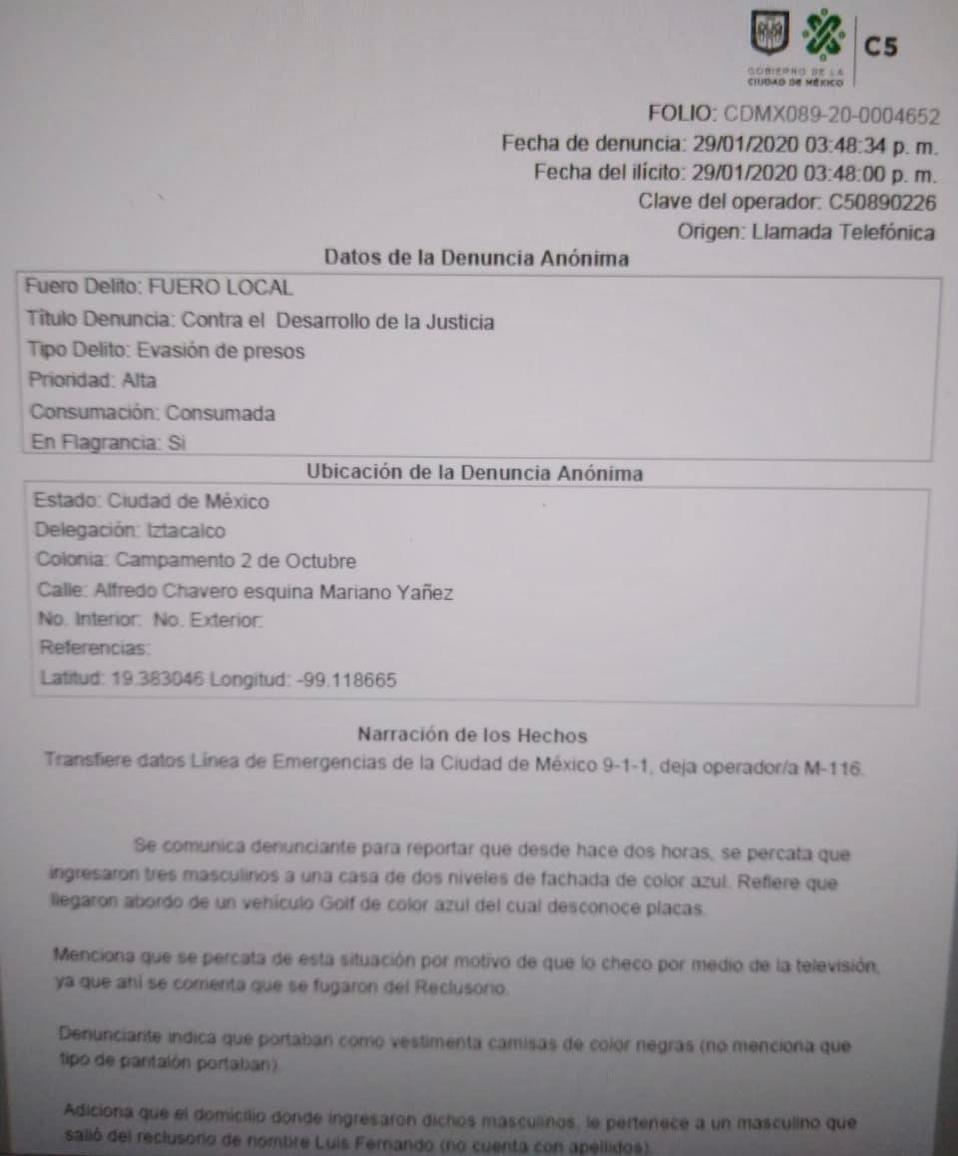 A través de una denuncia ciudadana, vecinos de Iztacalco denunciaron que los tres reos fugados del reclusorio sur se ocultaron en una casa de la calle de Mariano Yáñez y Alfredo Chavero en la colonia Campamento 2 de Octubre.