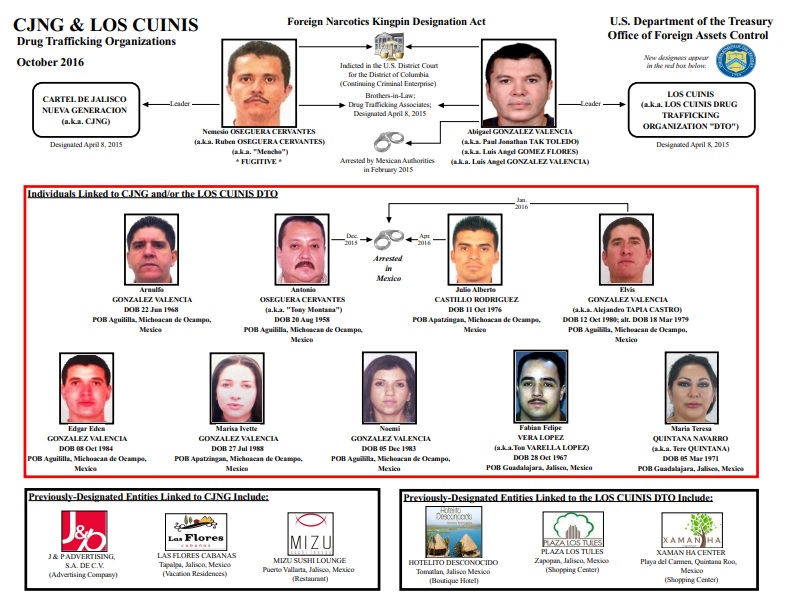 De acuerdo a la Administración para el Control de Drogas (DEA por sus siglas en inglés) el Cártel Jalisco Nueva Generación se ha expandido por todo el territorio con presencia en prácticamente todas las entidades federativas.