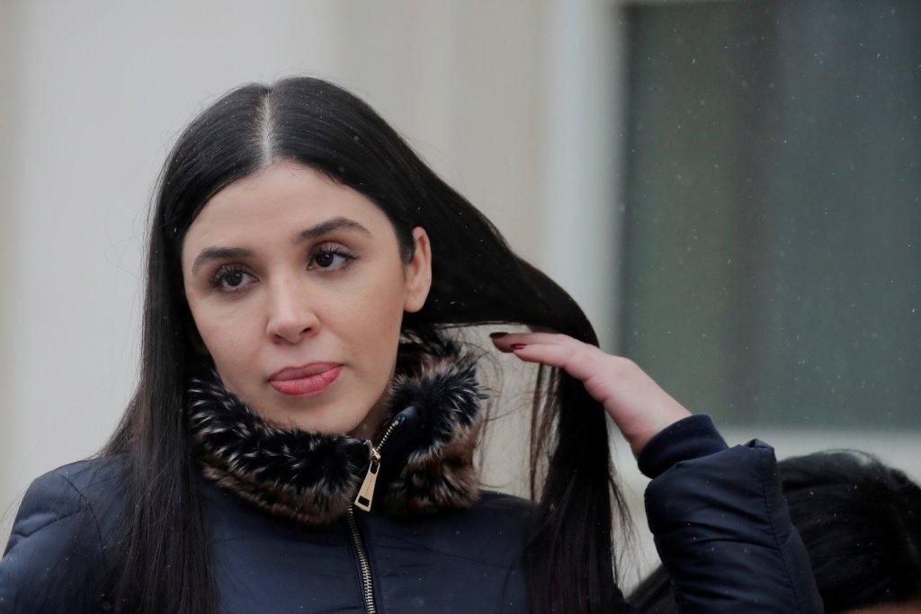 Emma Coronel, de 29 años, le levantó el pulgar de la mano derecha, se cruzó las manos en el pecho y le lanzó un beso antes de que los alguaciles retiraran a El Chapo rápidamente de la sala.
