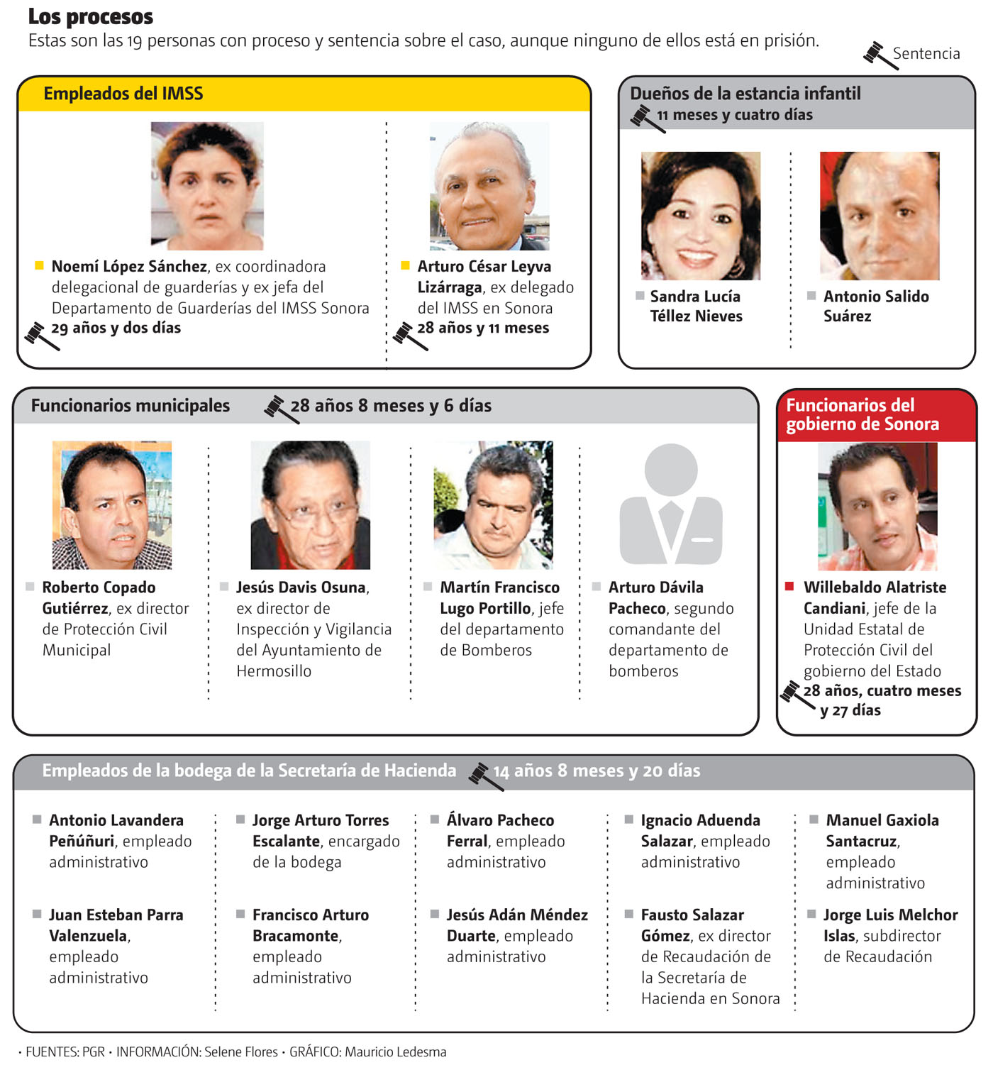 Personajes como Eduardo Bours, gobernador de Sonora 2003-2009, así como los ex directores del IMSS Daniel Karam y Juan Molinar Horcasitas, este último fallecido en mayo de 2015, nunca fueron considerados responsables por lo sucedido, a pesar de los señalamientos por negligencia y omisión en su actuación.