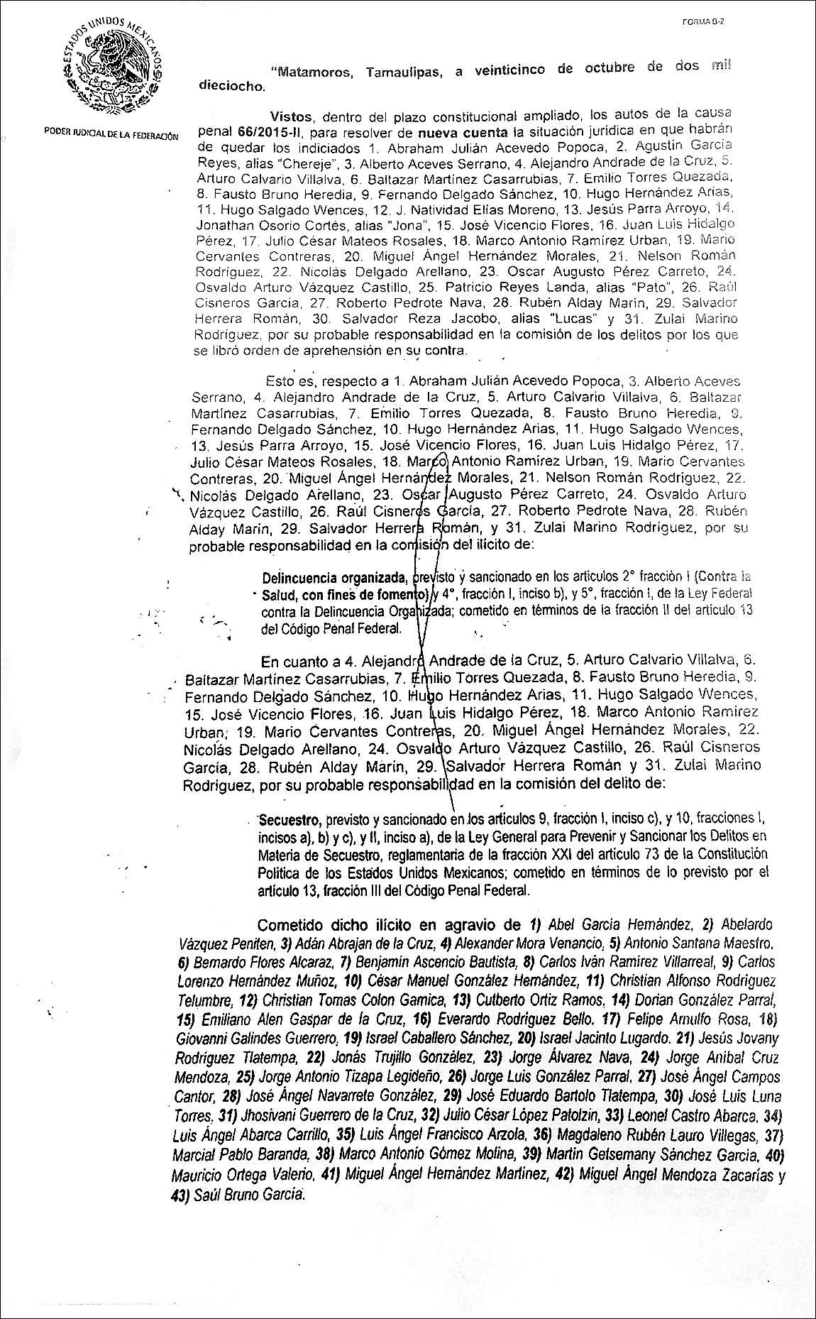 Esta resolución libró de los cargos de secuestro y delincuencia organizada a otros nueve imputados en el caso, respecto a la causa penal 66/2015-II. Pero estos no obtuvieron su libertad por tener abiertos otros expedientes por el delito de homicidio.