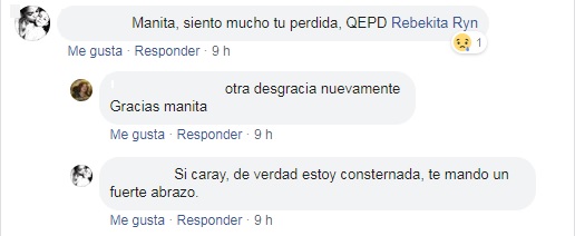 "Otra desgracia nuevamente. Gracias manita", responde una probable familiar de Becly Ryn.