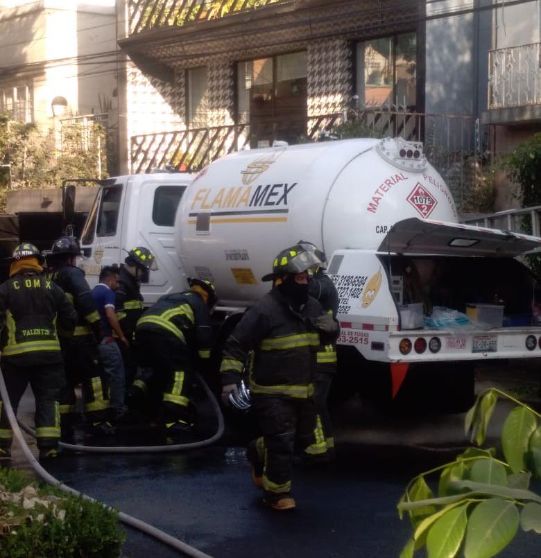 De manera preliminar se sabe que la pipa de la empresa Flamamex estaba abasteciendo combustible en uno de los inmuebles, cuando aparentemente una manguera en mal estado se rompió y sobrevino la fuga.