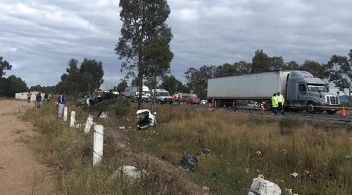 Pese al choque, el trailero no pudo frenar la máquina y saltó el camellón, para chocar contra una camioneta X-Trail, color azul marino, donde fallecieron tres tripulantes, entre ellos una mujer joven de entre 17 y 19 años, y luego pegó contra un automóvil Tiida, color blanco, el cual quedó partido en dos, donde viajaban dos individuos que también perdieron la vida.