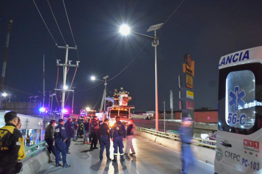 Autoridades del municipio de Naucalpan informaron que ayer en la noche elementos de Protección Civil y Bomberos, lograron rescatar a un hombre que subió a un poste de lámpara solar de 8 metros de altura, sujeto que fue detectado por las cámaras de video vigilancia del Centro de Control, Comando, Comunicaciones y Cómputo (C4) municipal.