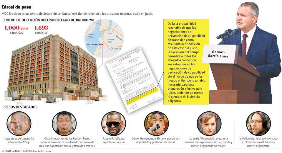En documentos liberados por la fiscalía de la Corte Federal del Distrito Este de Nueva York (EDNY) se evidencia parte del acuerdo de negociación que buscan alcanzar García Luna y el Departamento de Justicia, quienes consideraron “razonable” la posibilidad de alcanzar un convenio que evite un juicio prolongado.