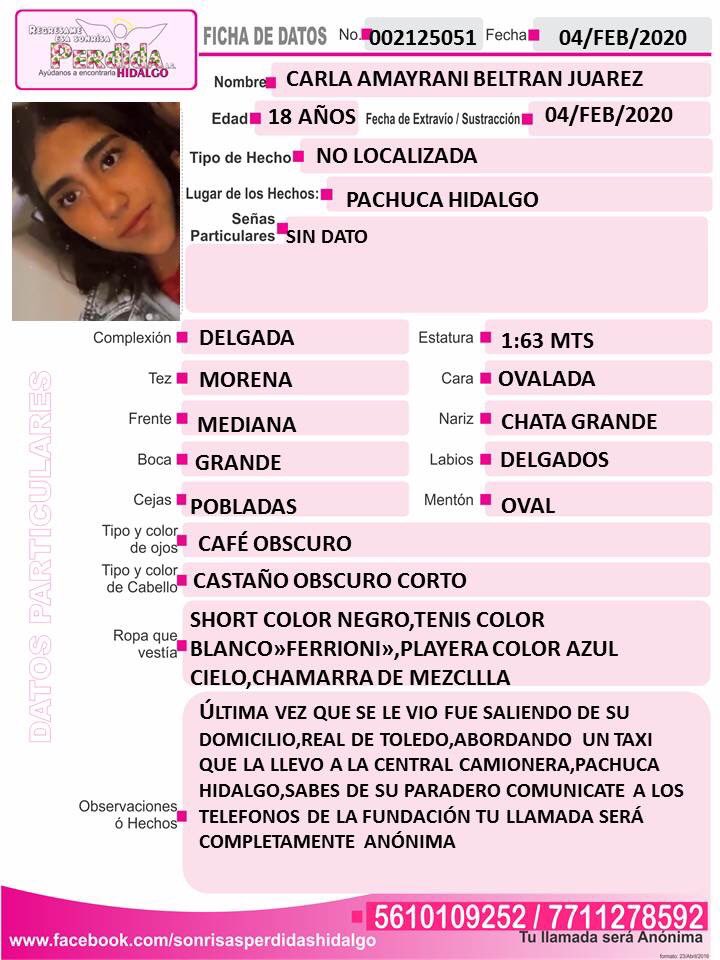 Familiares de Carla Amayrani Beltrán Juárez piden información para conocer su paradero, quien desde la mañana del martes 4 de febrero .