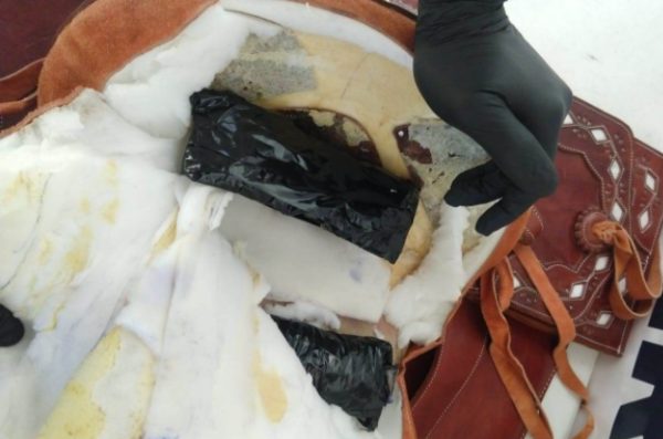 En Culiacán, la Guardia Nacional aseguró alrededor de mil pastillas de aparente fentanilo ocultas en una silla de montar, la montura en cuyo cojín se localizaron dos envoltorios de plástico con tabletas azules, con las características propias de la droga.
