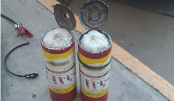La Guardia Nacional detuvo a una persona en la carretera Chihuahua - Ciudad Juárez, que transportaba 10 kilos 500 gramos al parecer de metanfetamina en extintores de fuego.