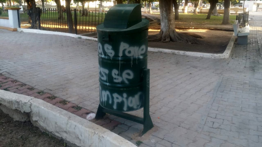 Personal de Servicios Públicos en Lerdo, se encuentra realizando las labores de reparación de los daños pues con 'thiner', para retirar la pintura morada de las banquetas.