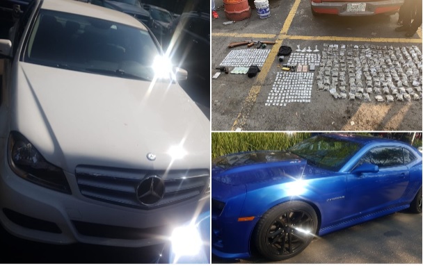 Tras una inspección, se les halló varios envoltorios con estupefaciente, un arma larga, dos cortas, dos granadas y dinero en efectivo.
