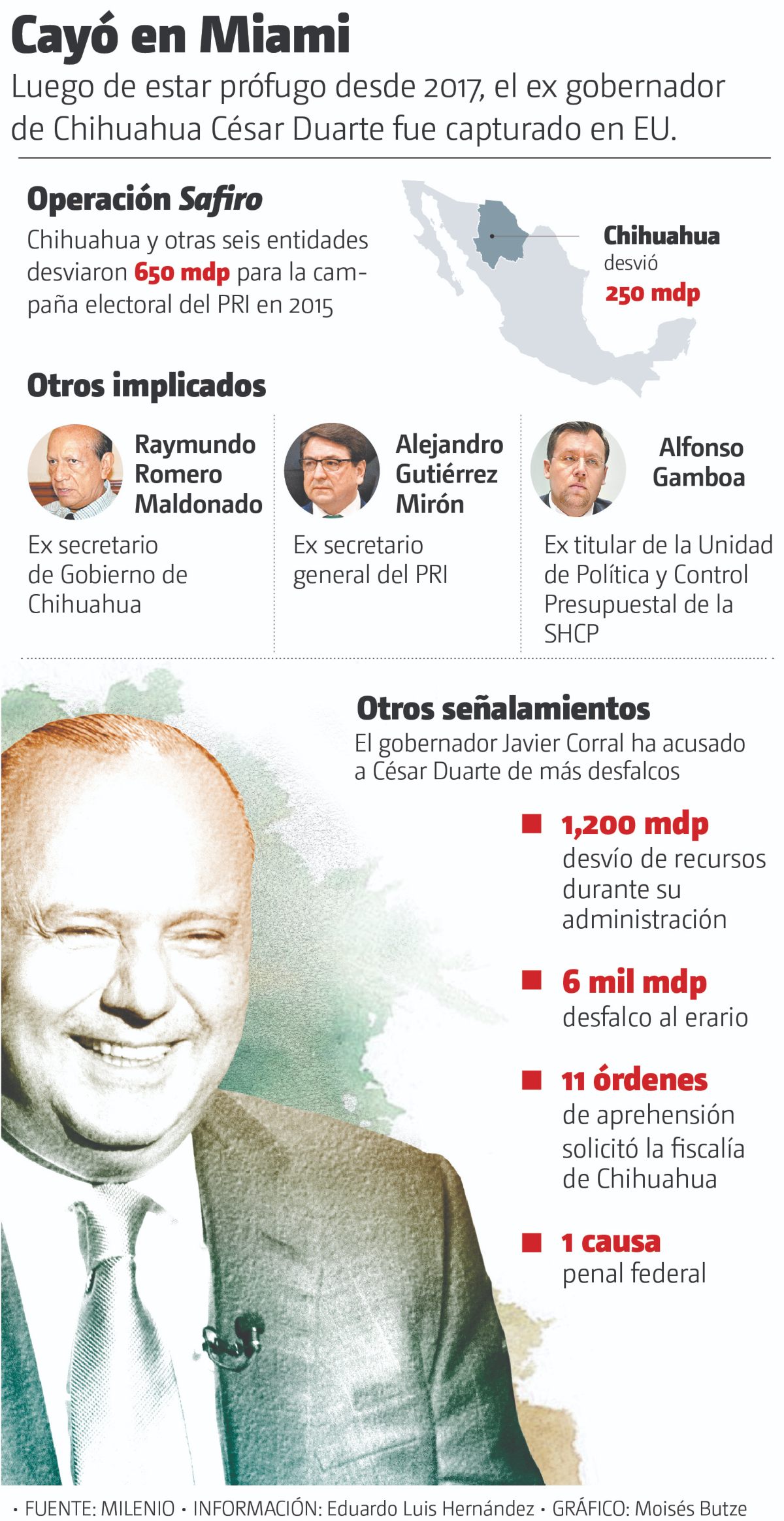 De acuerdo con las autoridades ministeriales, las pesquisas sobre el joven priista reconocido como “brazo operador” de Duarte Jáquez, se soportan por el desvío de “más de mil millones de pesos” que “se utilizaron para pagar campañas y sobornar a actores políticos y sociales”.