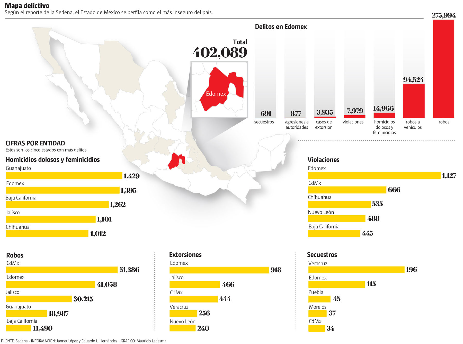 Luis Rodríguez Bucio, comandante de la Guardia Nacional, detalló que el Estado de México es el que cuenta con más elementos de la corporación con 9 mil 141, seguido de Michoacán con 3 mil 628; Jalisco, 3 mil 470; Oaxaca, 3 mil 391, y Ciudad de México, 3 mil 47.