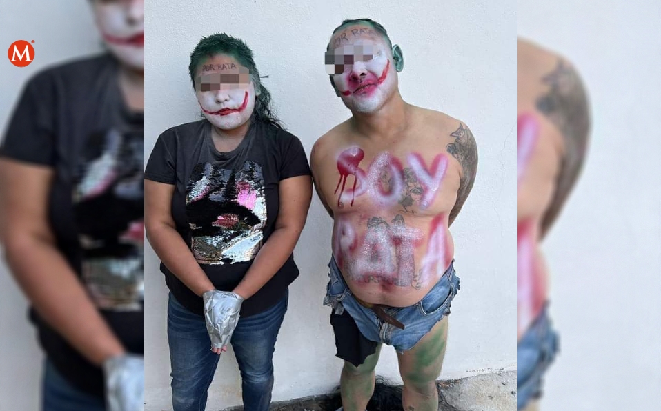 Una pareja que presuntamente bajo los efectos de la droga robaron a una mujer, fueron detenidos por ciudadanos, maquillados como "El Guasón" y amarrados a un semáforo de la avenida Francisco I. Madero en el municipio de Río Bravo.