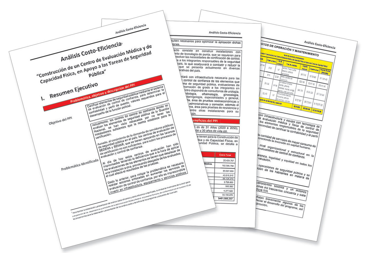 A través de la Dirección General de Ingenieros, la Sedena presentó ante la Secretaría de Hacienda un proyecto de inversión por 461 millones 585 mil 357 pesos para la construcción de un “Centro de Evaluación Médica y de Capacidad Física en Apoyo a las Tareas de Seguridad Pública”.