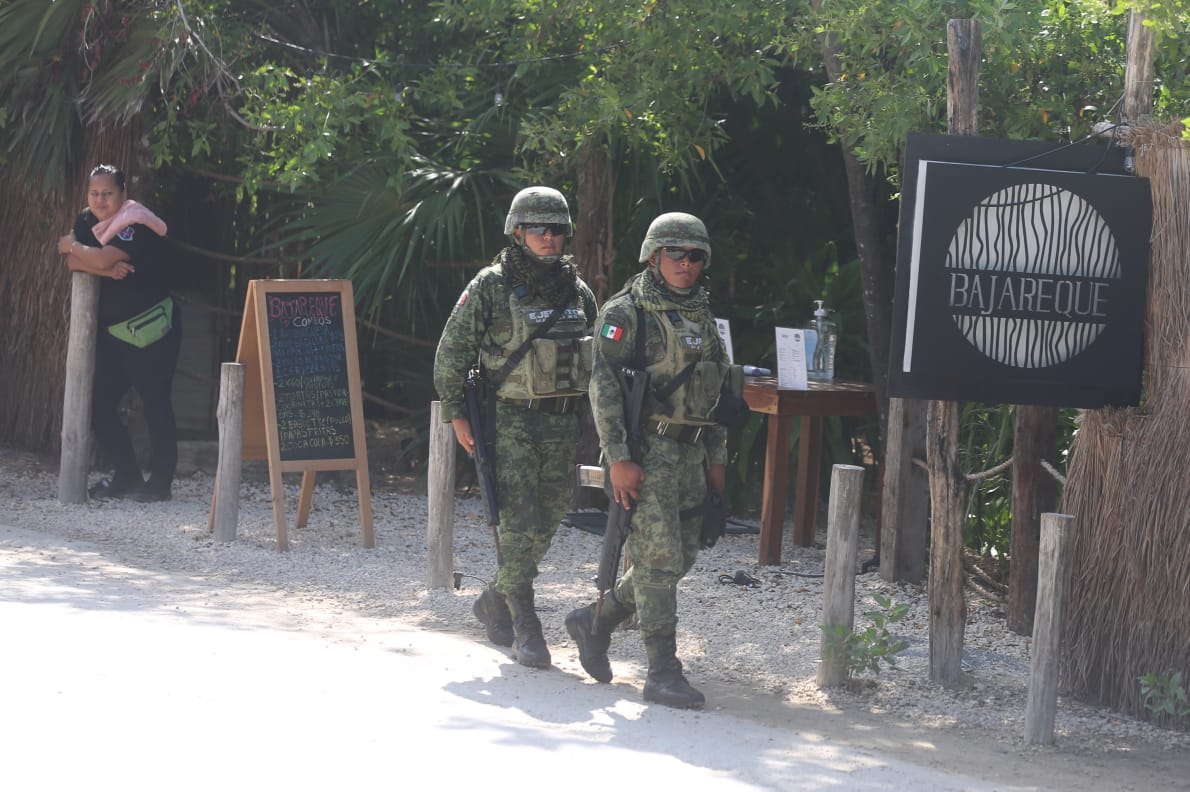 Este miércoles en las calles de Tulum también se observa, como informó durante la mañanera el secretario de Defensa, Luis Cresencio Sandoval, el reforzamiento de la seguridad con rondines, sobre todo de elementos de la Secretaría de la Defensa Nacional.