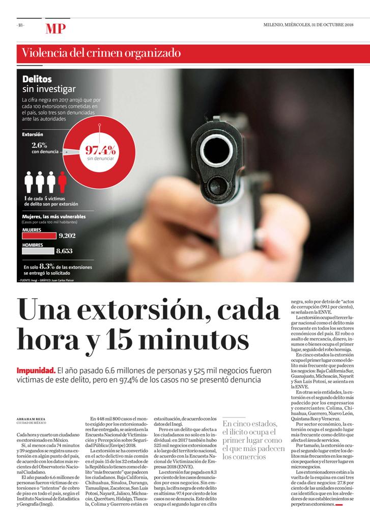 Pero es un delito que afecta a los ciudadanos no solo en lo individual: en 2017 también hubo 525 mil negocios extorsionados a lo largo del territorio nacional, de acuerdo con la Encuesta Nacional de Victimización de Empresas 2018 (ENVE).