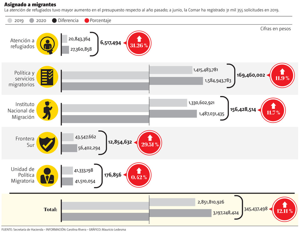En medio de la crisis migratoria que enfrenta México, el gobierno del presidente Andrés Manuel López Obrador planteó incrementar el presupuesto para 2020 en poco más de 11 por ciento a las instituciones relacionadas con el asunto; sin embargo, los recursos destinados para atender la emergencia aún se quedan por debajo de los que se tenían en 2018, cuando escaló el problema.
