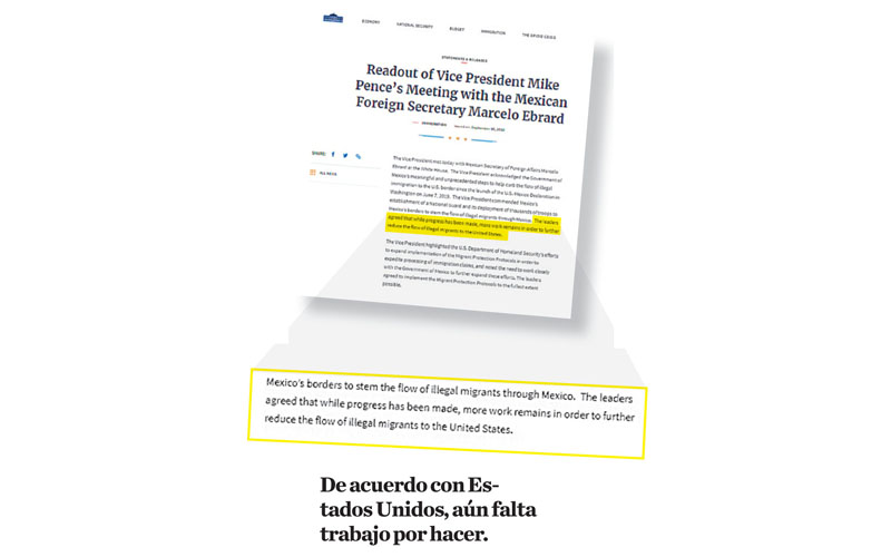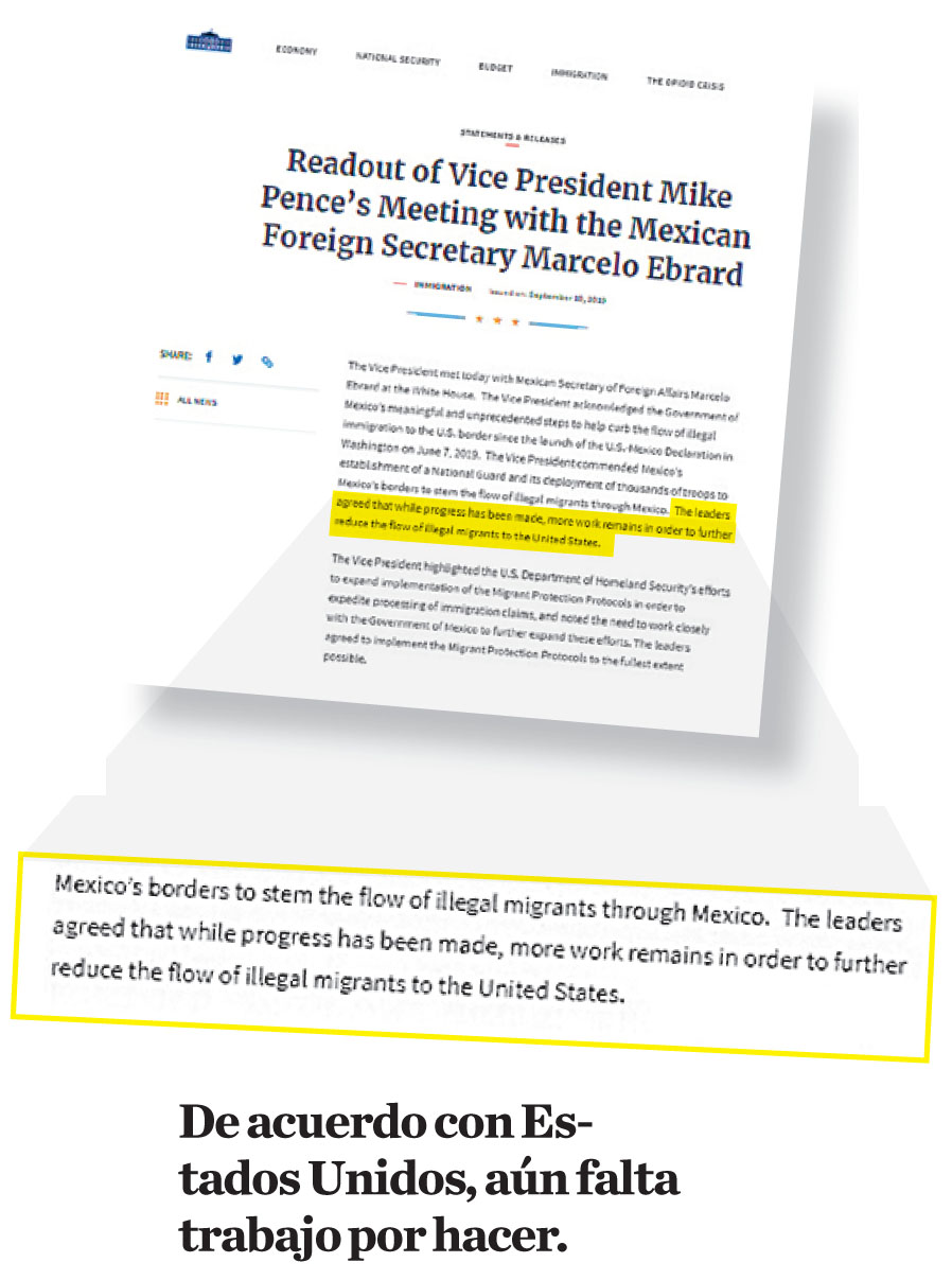 Tras el encuentro, la Casa Blanca refirió que el vicepresidente Mike Pence planteó que a pesar de los avances que se han logrado hasta el momento aún queda trabajo por realizar para reducir aún más el flujo de migrantes a Estados Unidos.