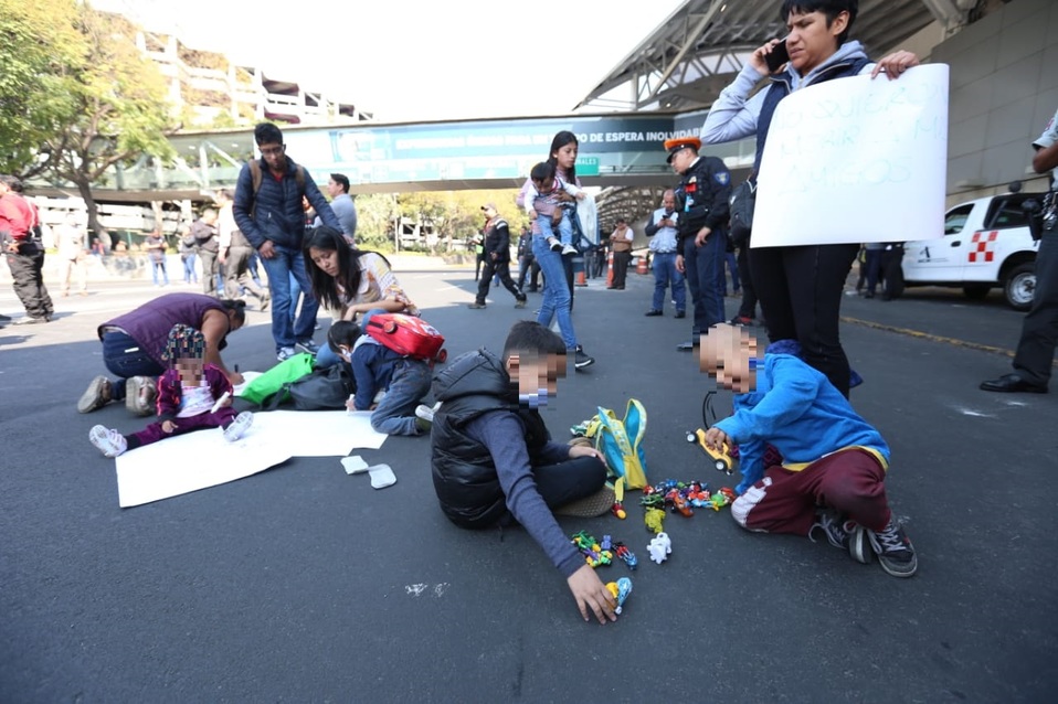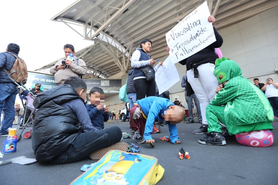 Los padres bloquearon por más de cuatro horas los accesos de la Terminal 1; sin embargo, eso no impidió que los niños se entretuvieran mientras se manifestaban para exigir medicamentos contra el cáncer.