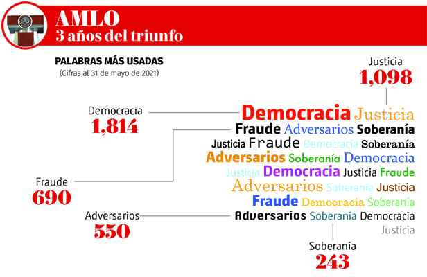El próximo primero de julio, el triunfo de Andrés Manuel López Obrador en las urnas cumple tres años. Desde diciembre de 2018 cada mañana entra a uno de los salones más grandes de Palacio Nacional, saluda, se sube a una tarima y dicta la política social, gira instrucciones a su gabinete y envía mensajes a sus adversarios. Todo puede pasar: atiende peticiones, anuncia rifas, lee poesía, muestra estampitas... el show de la conferencia matutina.