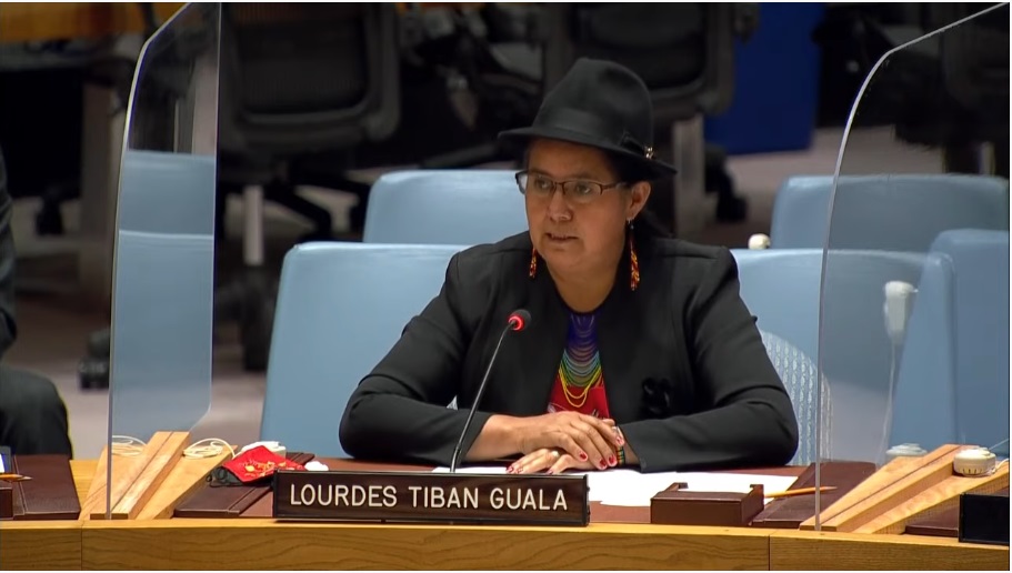 Lourdes Tibán Guala, integrante del Foro Permanente de las Naciones Unidas para las Cuestiones Indígenas, llamó al Consejo de Seguridad a tomar en cuenta el papeles de las mujeres en la consolidación de la paz y a evaluar el avance de los Estados en la violación de derechos humanos a grupos minoritarios. .