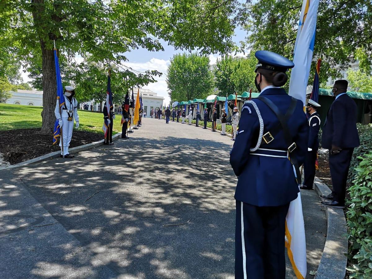 A media hora de que llegue López Obrador a la Casa Blanca, integrantes de la Guardia de Honor de los Estados Unidos ensayan la recepción al mandatario mexicano.